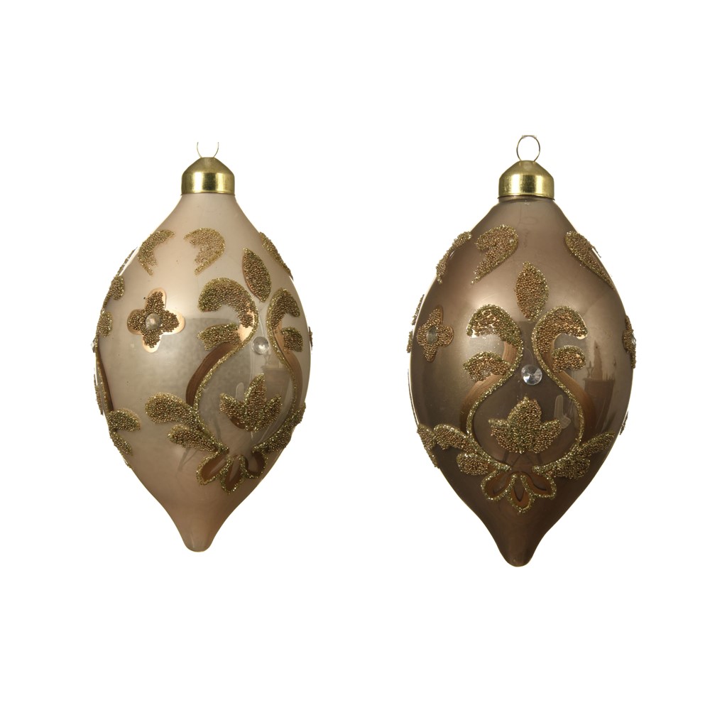 Decorative glass sphere, cone shaped, in different colors of 6.5xH13 cm in dimensions. This decorative accessory can be used to decorate the New Year tree, adding the magic of the holidays to your festive environments of the end of the year.