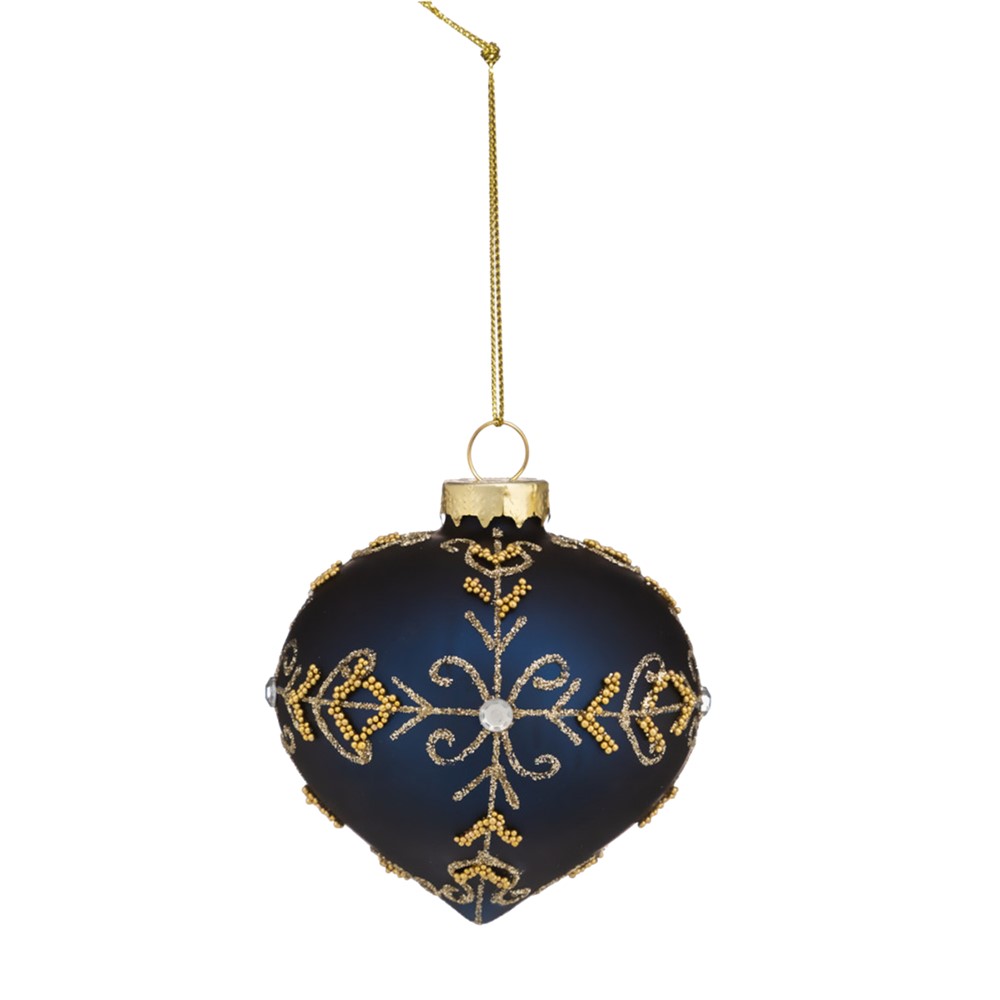 Decorative ornament, made of glass material, with dimensions of 9 cm in diameter, in red and glittery gold colors, equipped with a ribbon at the upper part, which allows it to be placed as a decorative toy on the Christmas tree. It can be used to decorate various interior environments during the Christmas and New Year holidays. This product is suitable for non-professional use, in home environments, and for professional use, by event organizing companies.