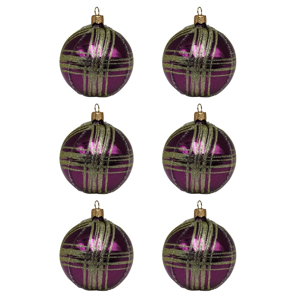 Decorative spheres, glass, purple, 8 cm dia, 6 pieces