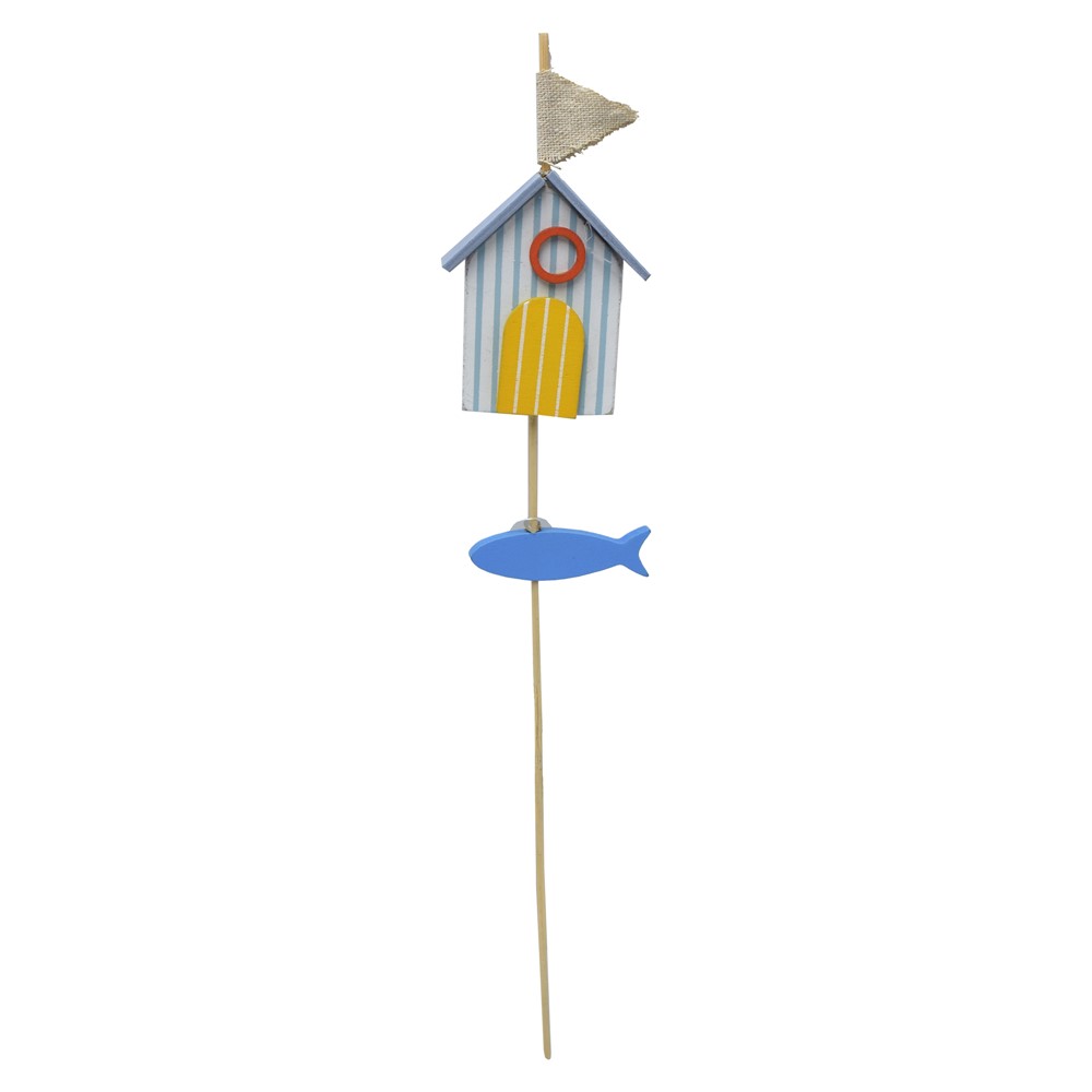Garden decorator with a durable stick to place in your vases or garden. It comes with the image of a colorful house which brings to mind the aroma of the sea with its decor. This decorator is made of wood, durable and quite beautiful.