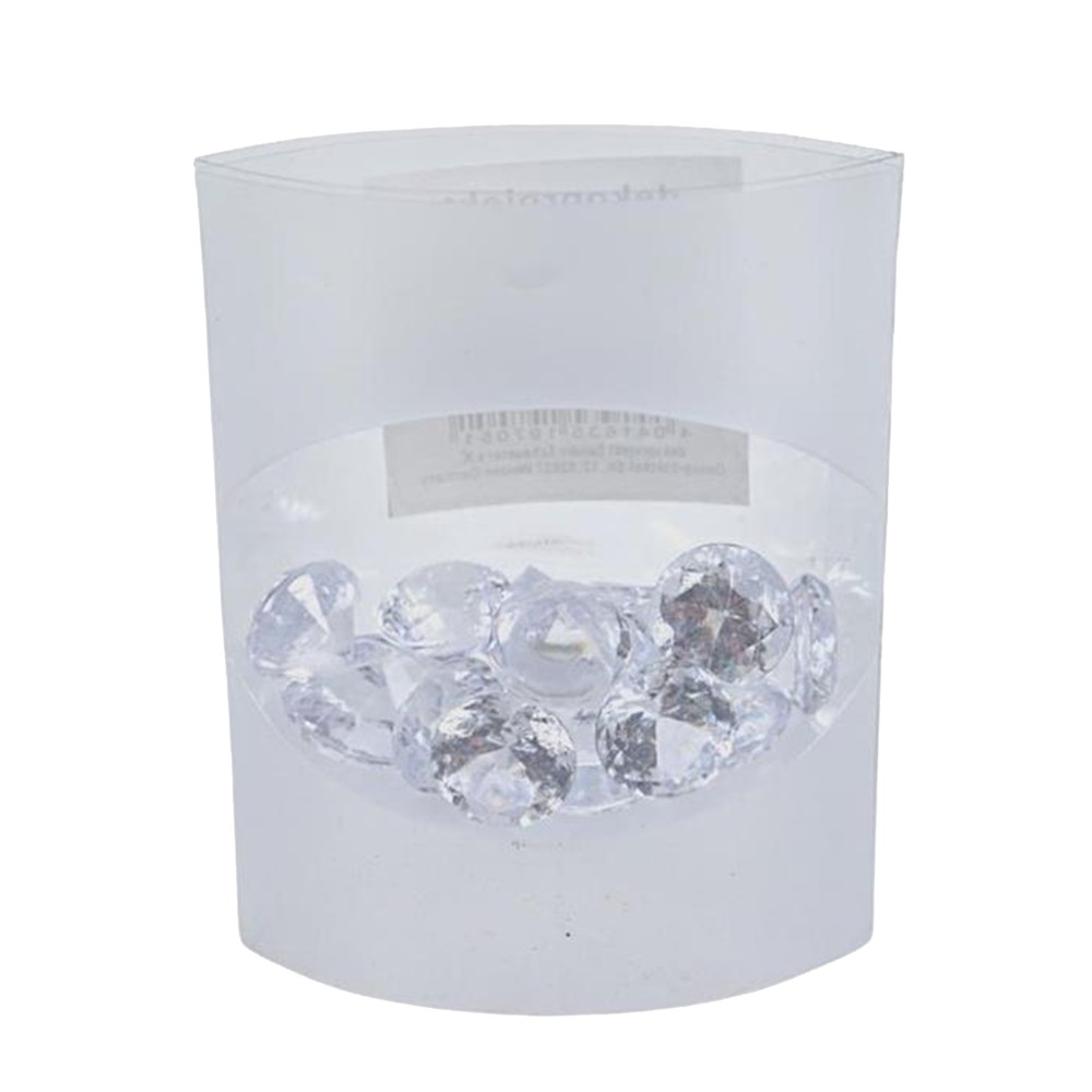 Decorative stones, plastic material, transparent color, size 2 cm. These decorative stones are the right solution for decorating your premises with elegance and finesse. Their transparent color and vibrant luster make these stones very attractive to the eye.