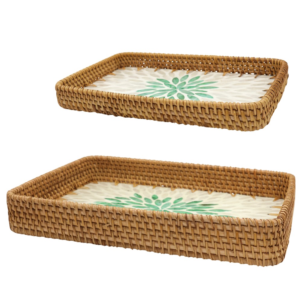 The decorative tray with straw material and glass surface is a highly functional object that will also serve as a decorative element. You will have an accessory with an elegant touch and a unique color combination. The combination of material and design make it a unique part of your decor. But you can also create different compositions with this tray set. The leaf design makes it look very nice with any style. Functional and elegant, they come in sizes 33x24xH4.5 cm and 28x18xH4 cm. You can use it not only in terms of decoration but you can also serve it. Curated down to the details and with a unique style that will bring freshness to your spaces.