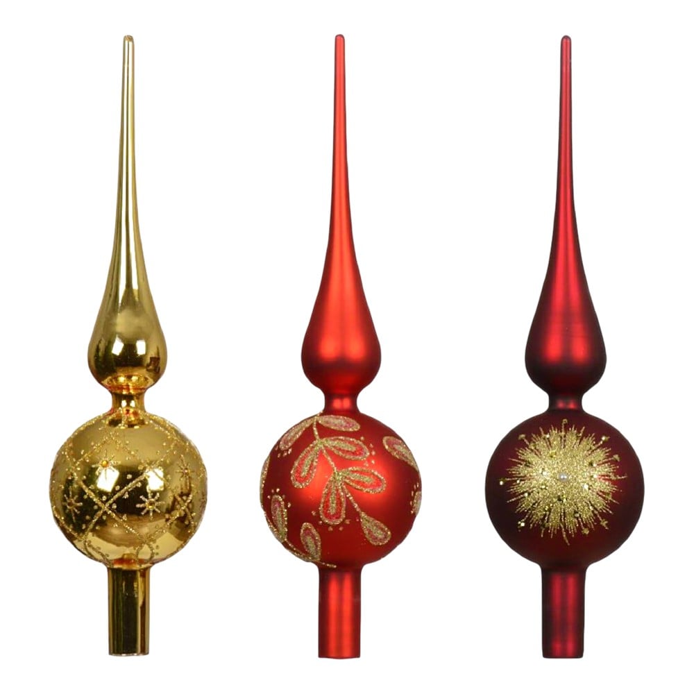 Decorative tree top, glass, red/gold, 8.5x8.5x32.5cm