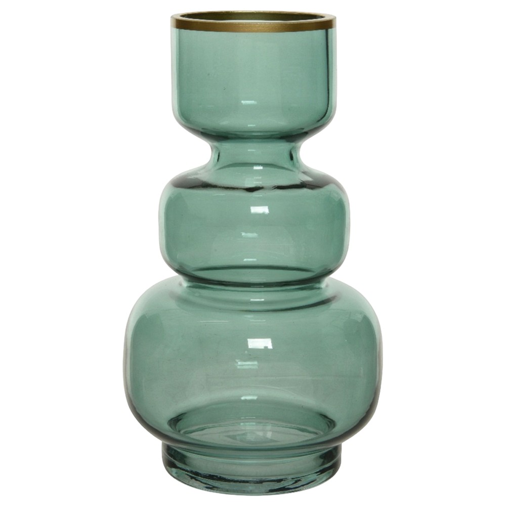 This decorative green glass vase is a combination of natural beauty and simple elegance. With an elongated shape and harmonious proportions (diameter 15 cm and height 25 cm), it brings freshness and warmth to any environment. The green color creates a sense of calm and connection with nature, while the glass material gives it a subtlety and soft shine. Suitable for fresh flowers, decorative branches or as a single object, this vase is ideal for placing on a table, dresser or shelf, bringing a lively and aesthetic touch to your space. A beautiful choice for any style of decoration, from modern to classic.