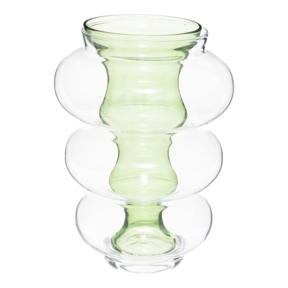 This elegant double vase in light green tones radiates refinement and freshness. With its slim design and soft color, it brings a touch of nature to any room. Perfect to decorate with flowers or as an elegant decoration on its own. Add a touch of beauty to your interior with this unique vase.