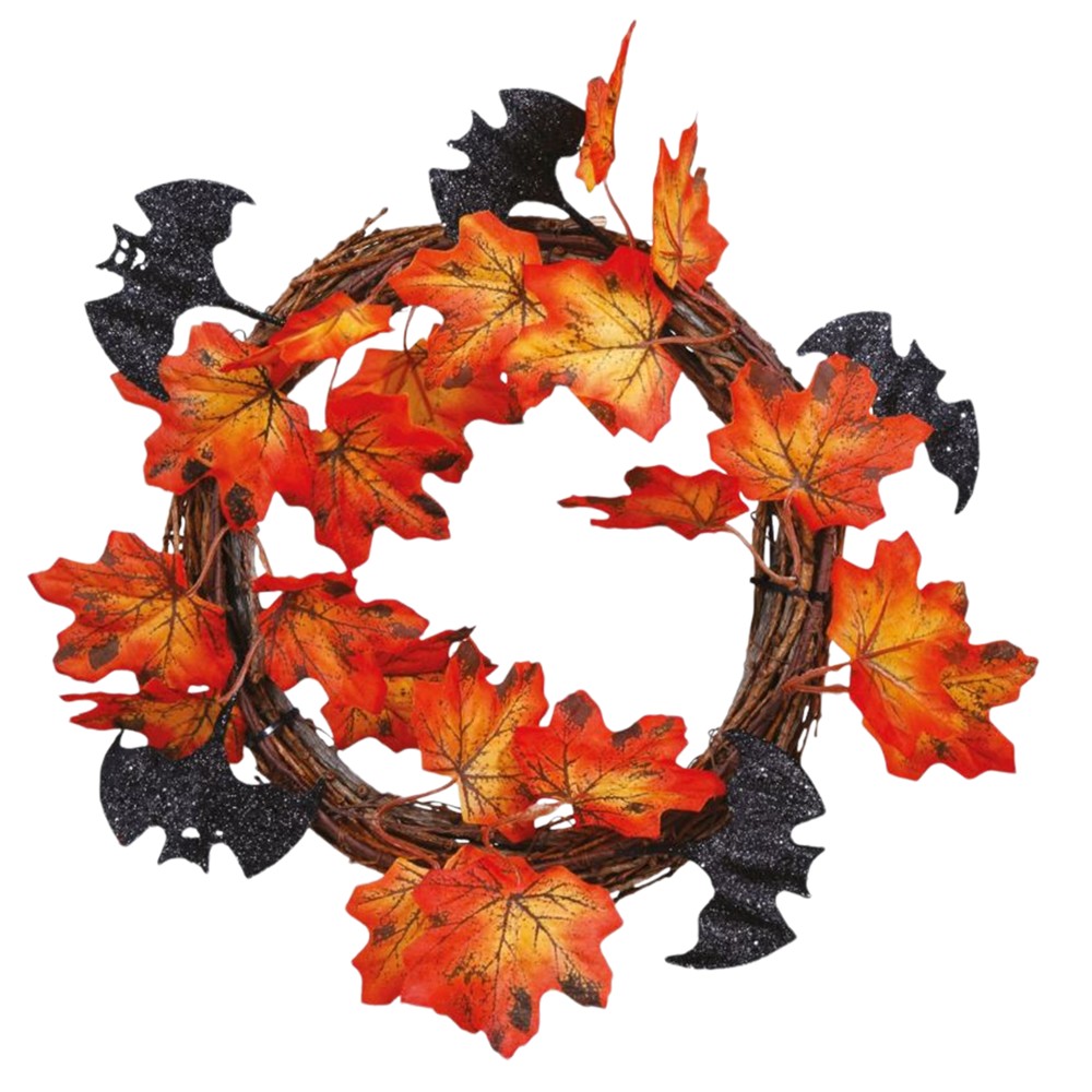 This decorative Halloween wreath has an attractive leaf and bat design, with a diameter of 30 cm. Idealized to create a mysterious and scary atmosphere, it is perfect to decorate doors, walls. Made from durable materials, this wreath will add a fun and unique touch to your Halloween space.