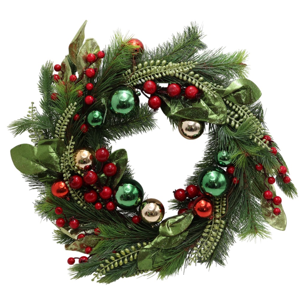 Our Christmas wreaths, constructed from high-quality PE material, stunningly recreate the look and feel of natural greenery. Each branch is carefully shaped to give the authentic feel of a pine tree, while decorative details – red berries, light snowflakes and pine cones – add a warm and authentic festive touch.