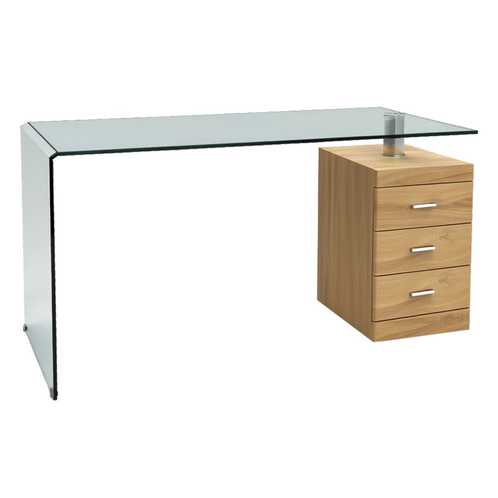 This office desk measuring 135x75xH75 cm combines modern design and durability for an efficient work environment. The 12 mm tempered glass top is transparent and resistant, giving the desk a clean and elegant look. The MDF structure in sonoma color offers stability and a warm atmosphere, which easily fits into any office decor. With its wide space and optimal height, this desk is perfect for professional work, study or various activities in the workplace or home.