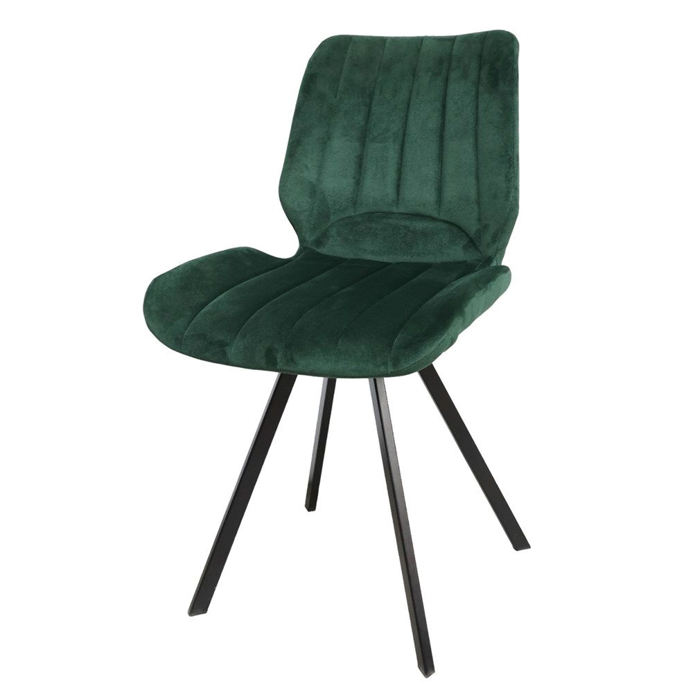 Dining chair, with a pyramid-shaped support structure, consisting of rods of metal material, with a diameter of 1.5 cm, coated with non-liquid thermoplastic polymer paint, in black color. This chair is equipped with a seat and backrest with velvet fabric upholstery and soft sponge filling. It has dimensions of 46x58x81 cm. This product is suitable for use as a functional and decorative object, in the interiors of houses, restaurants or hotels.