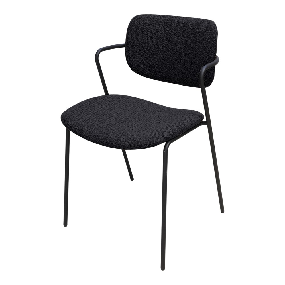 Dining chair with dimensions 49.5x55xH79.5cm is an excellent element of furniture to add elegance and comfort to your dining environment. It comes with a textile upholstery in a black color, which gives it a refined look. Its metal structure is an essential design element, ensuring stability and durability for the chair. The look of the upholstery gives a sophisticated and high-class feel to your environment, making the chair suitable for many types of decor.