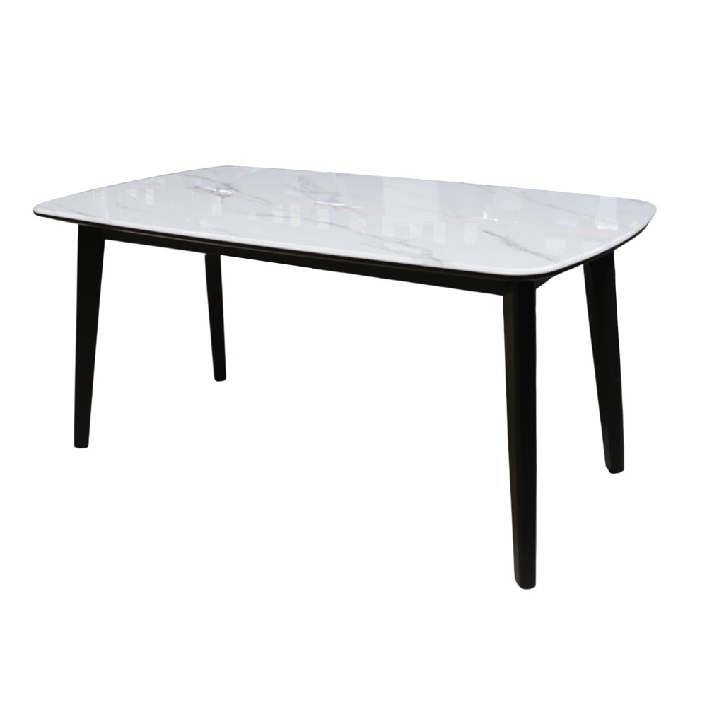 Dining table, sintered stone tabletop, wooden legs, white, 80x140 cm