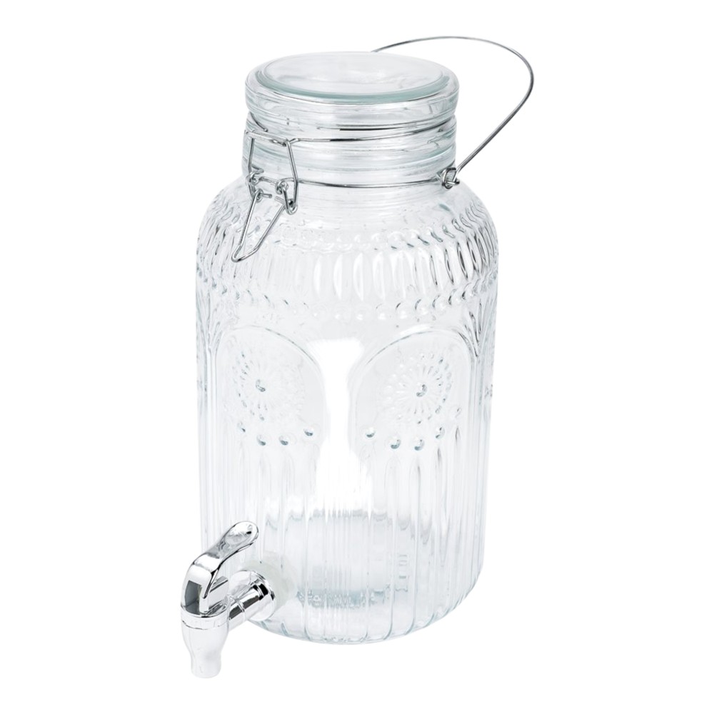 This glass dispenser jar with a tap, made of transparent glass, is an elegant and practical solution for serving various drinks at parties or simply for everyday use at home. Its clear design allows you to easily see the contents, while the integrated tap ensures easy and spill-free serving. The glass is easy to clean and resistant to stains and odors. Ideal for serving juices, lemonades, iced teas, punches, and other beverages. This dispenser jar with a tap is an excellent choice for serving drinks with style and practicality, adding a touch of elegance to any occasion.