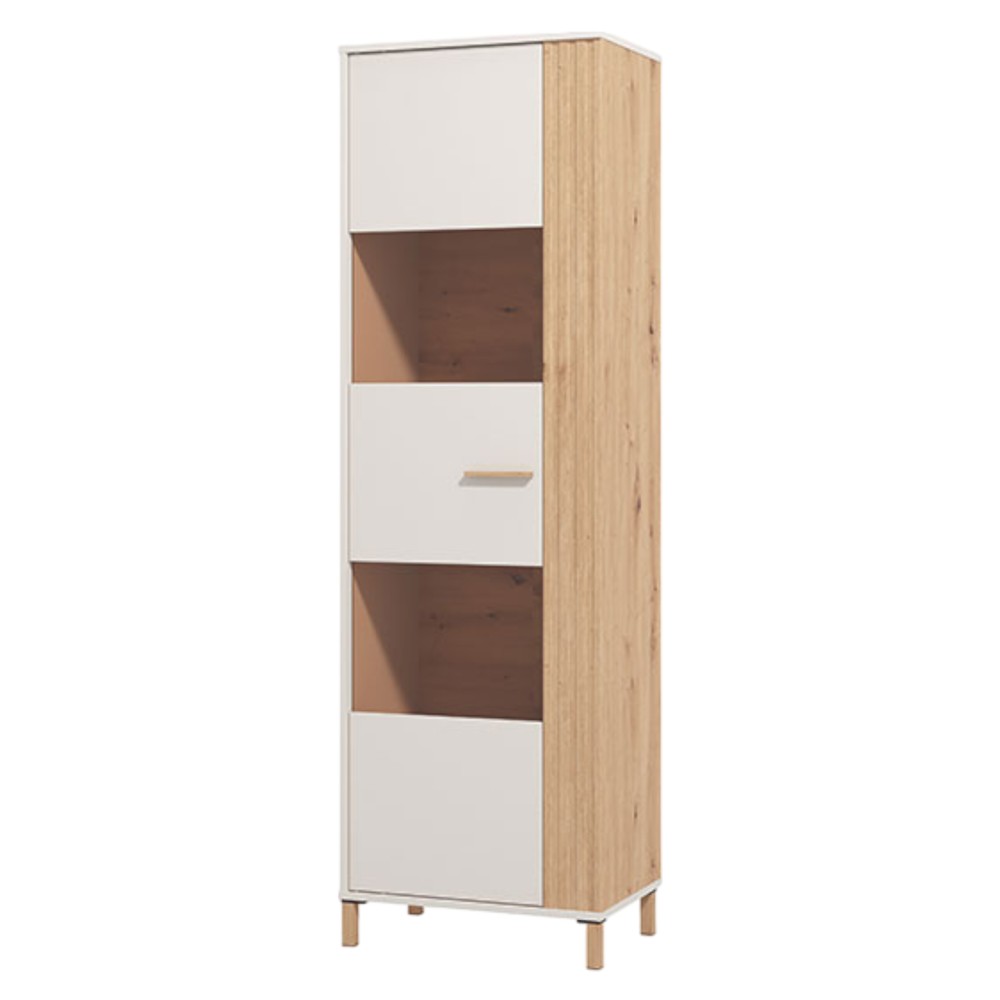 Display shelf, Belfort, melamine, oak/white, 59.5x40xH192.5 cm