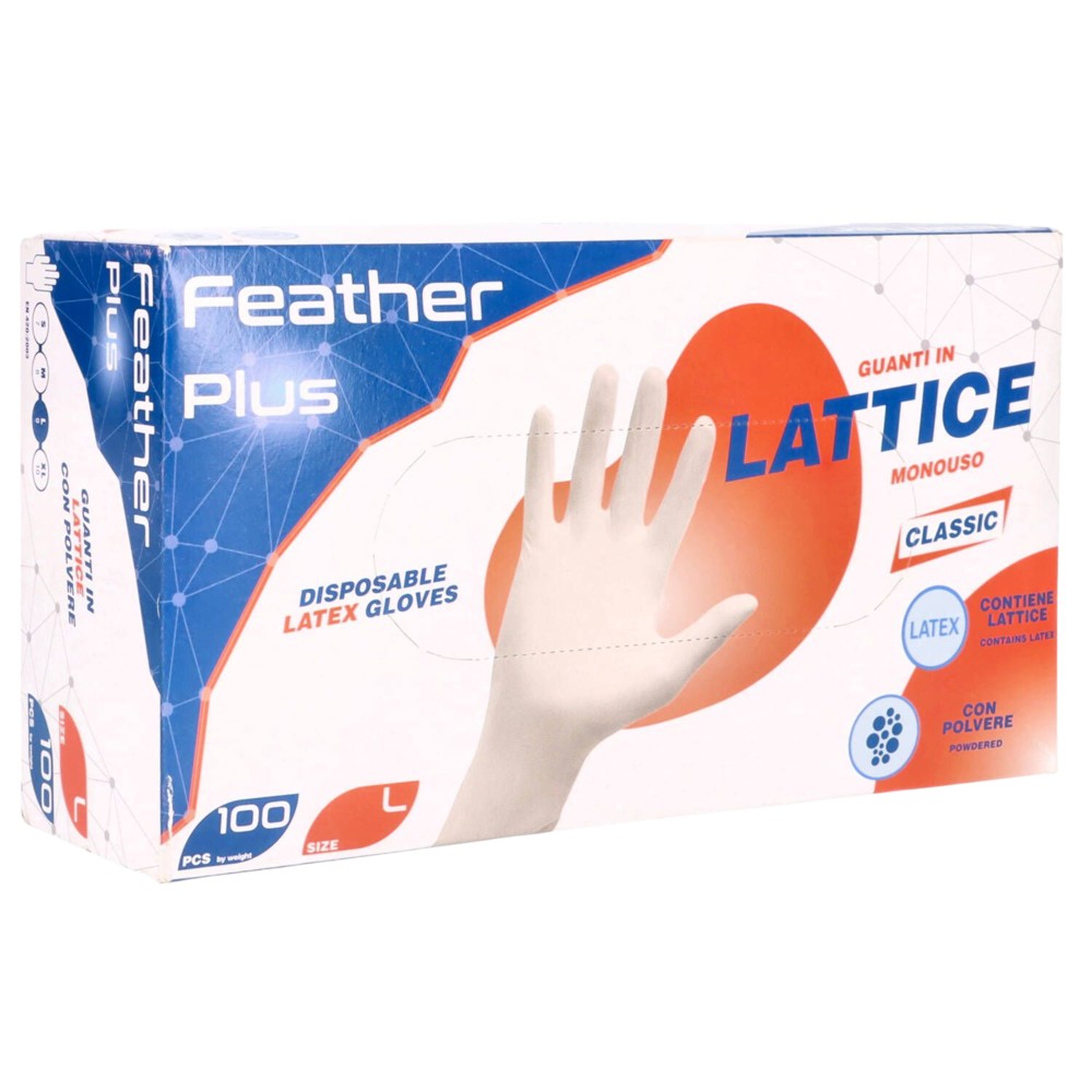 Disposable latex work gloves with powder, Feather Plus 100, size L
