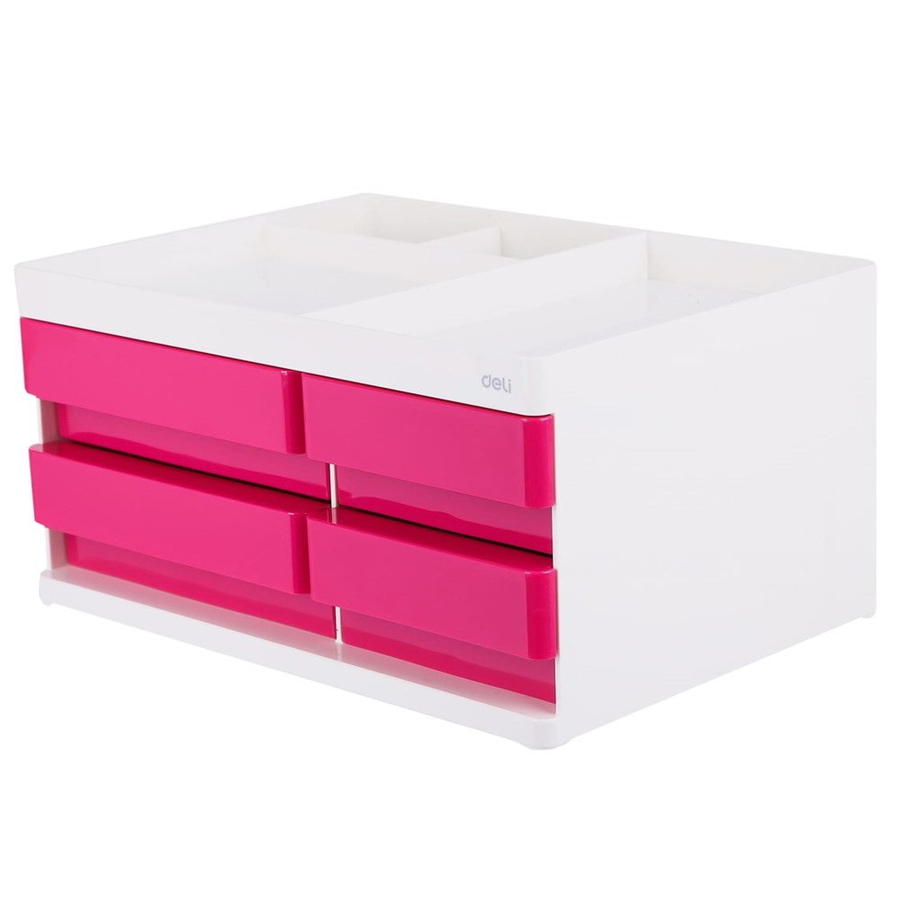 You're reviewing:Document holder with 4 drawers with 3 places for accessory holder, 13.1X18.9X26.4cm, plastic, white, rose