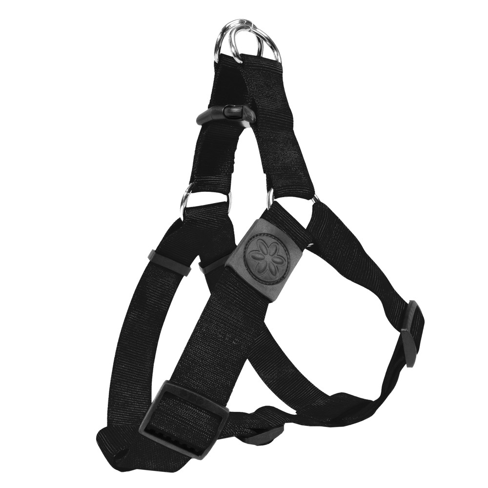 This is the classic nylon H-harness by Camon. Very resistant with a 2.4 mm nylon thickness. It is realised with high-quality materials. With quick release and double adjustment for a perfect wearability. It doesn't fade because yarn-dyed. The bigger size (F034) has an additional adjustment under the belly and a double x-stitching for a higher resistance. In the two smaller versions the adjustment buckles are made of zamak.