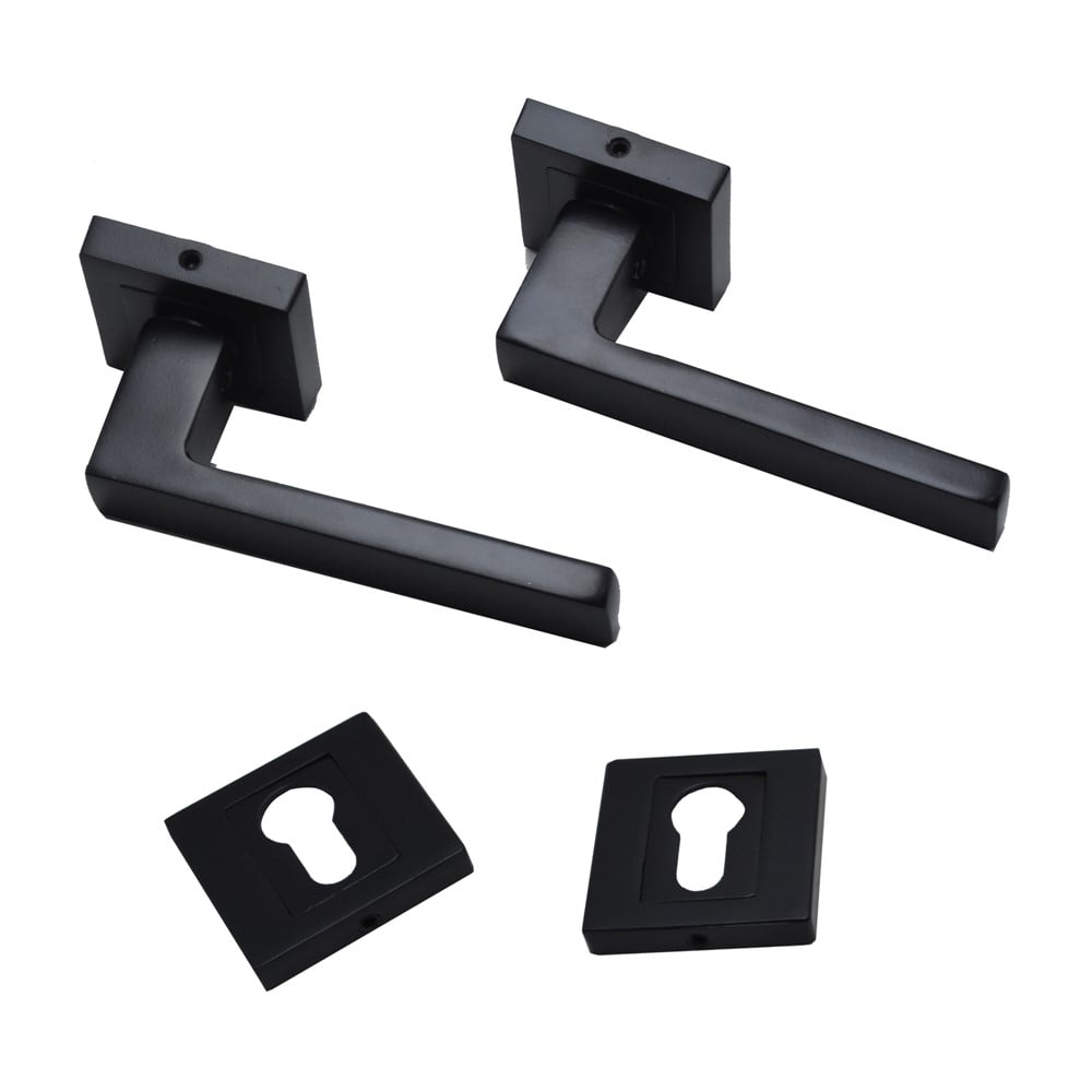 This door handle with black color.It is a qualitative and resistant handle, her body is composed of solid aluminium material, including accessories for instalation.
