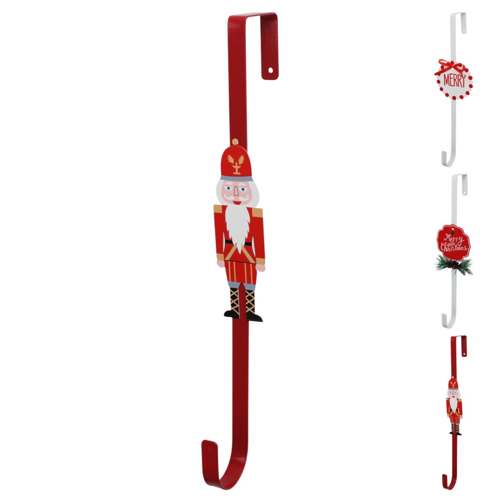 Door holder for decorative wreaths, metal, Red, white, Christmas motif, 37 cm