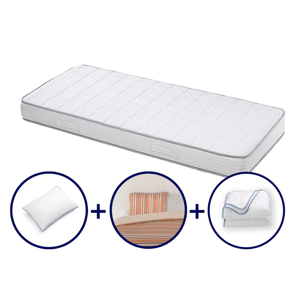 Silver iMemory innovative mattress has a innovative interior with different levels of hardness which can be rotated to adjust the strength that you need. Silver-coated fibers protect against bacteria and allergens. This mattress with zip cover which can be removed and can be washed. Warranty: 15 Years. IMemory Silver Single Package includes: Silver iMemory Dormeo mattress 90x190 cm (42,990 ALL). Siena Quilt 140x200 (6,000). Pads Siena 50x70 (2,990 ALL). Set of sheets 140x200 (4.490 ALL) . value products: 56.470 ALL. value package: 44,990 ALL. Saving: 11,480 ALL.