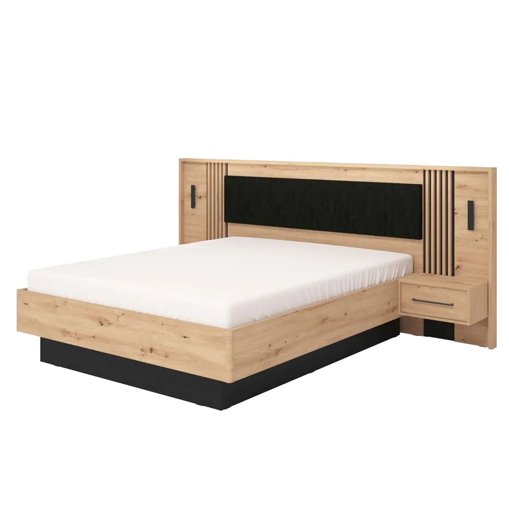 Double bed, Ascalon, oak, natural/black, 268x208.5xH115.5 cm (mattress support not included)