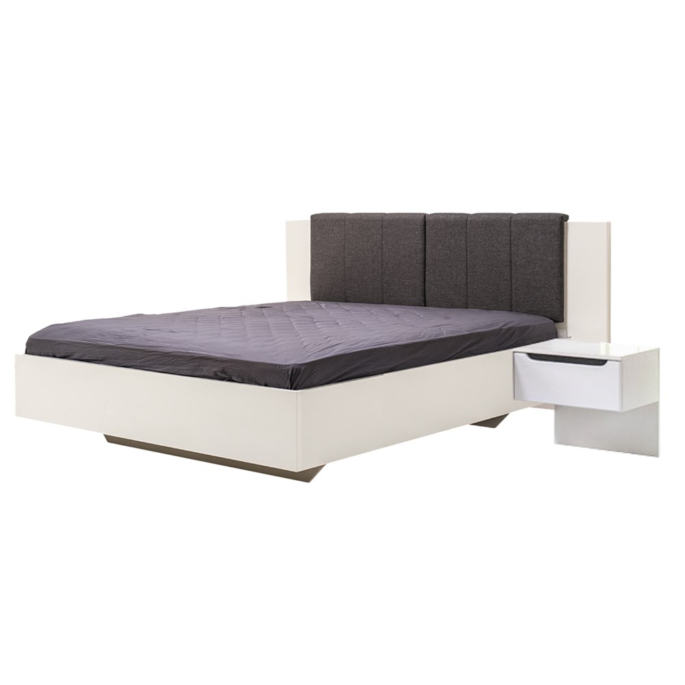 Double bed, KARL, melamine and MDF, white, 254.5x211.5xH101.5 cm
