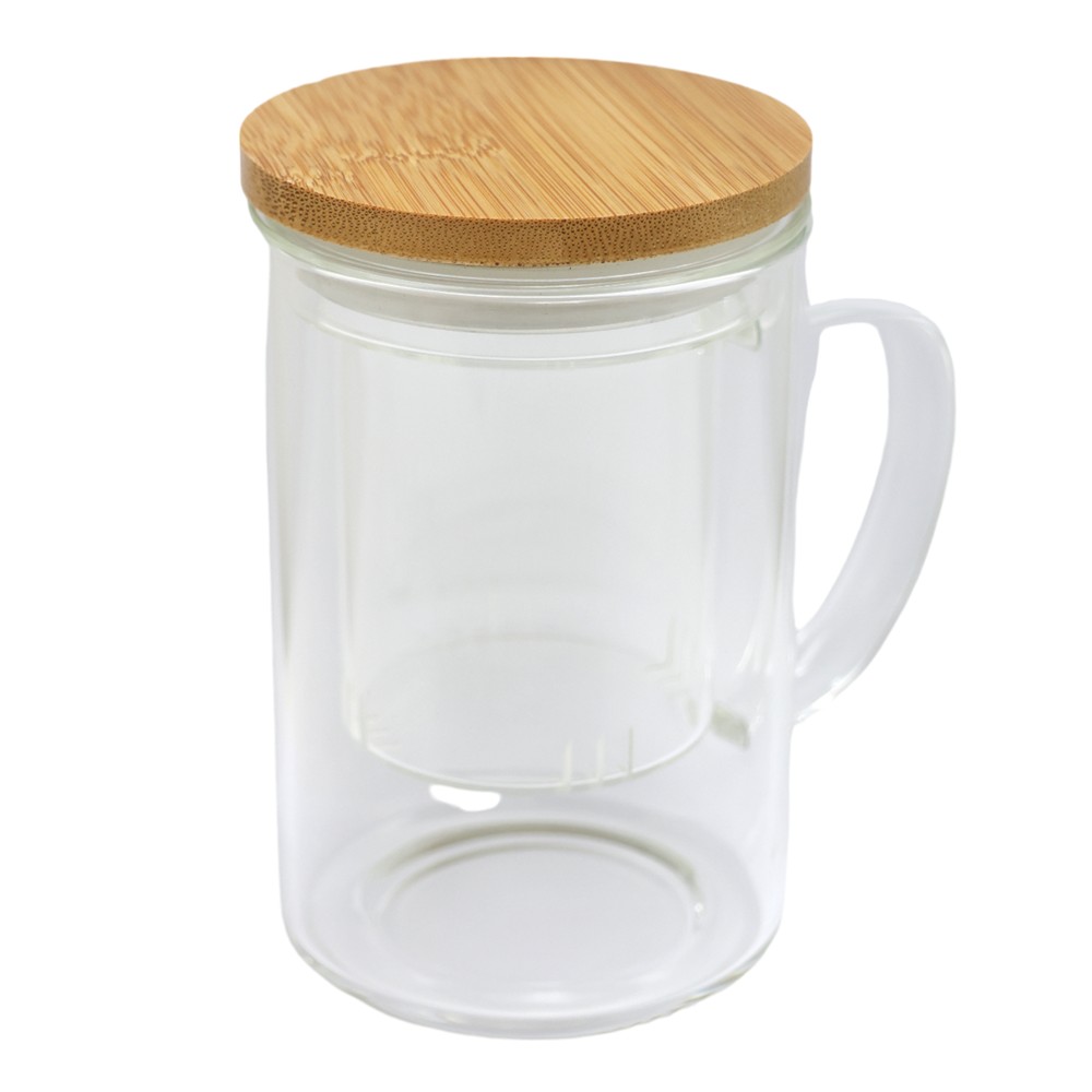 The double tea cup, available in glass and bamboo material, is transparent and has a height of 14 cm, with a capacity of 500 ml. This choice of cup provides a comfortable experience for enjoying tea. The glass and bamboo materials make it durable and suitable for everyday use, while the transparent design allows the user to see the liquid inside the cup. These dimensions make it suitable for use at home, in the office or in any other environment according to your needs.