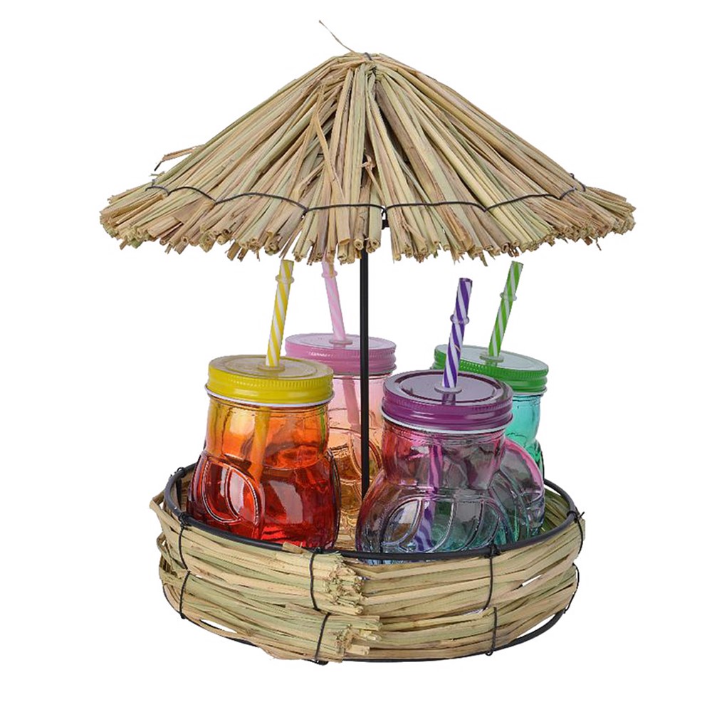 A special holder with 4 glass cups. Ideal for beach bars as well as facilities near the coast. Made from natural materials.