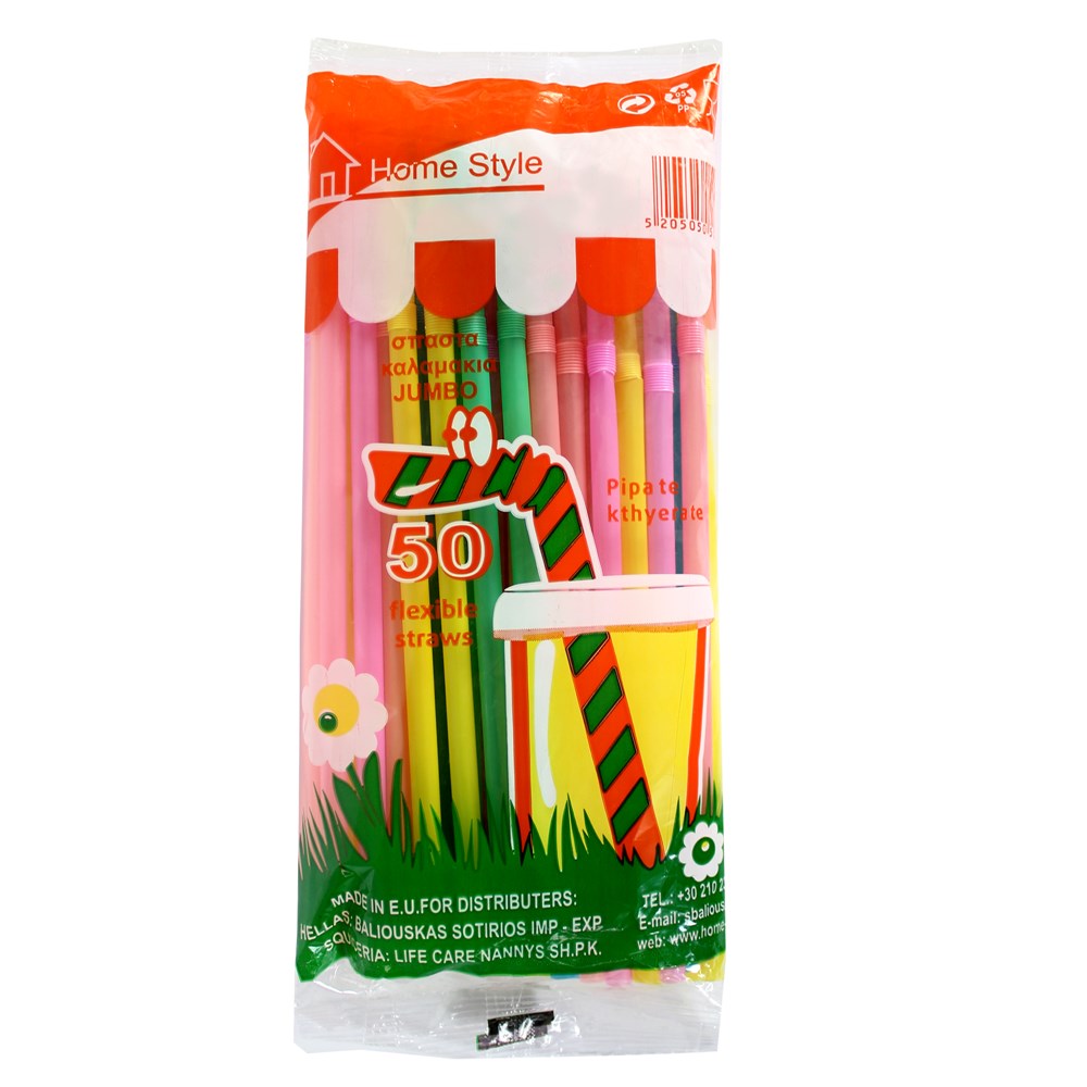 Drinkings straws (Pk 50), Size: 22 cm, Color: Assorted, Material: Plastic