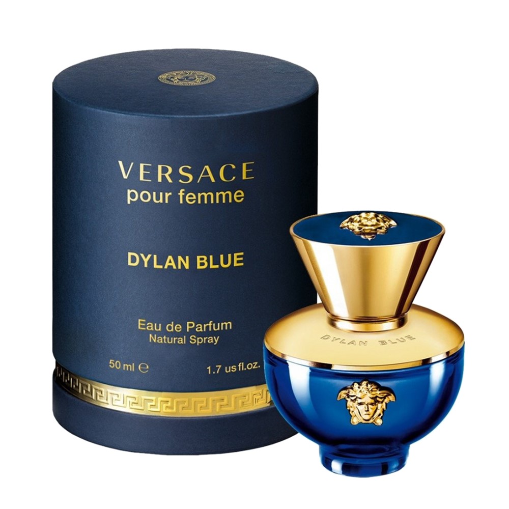 Eau de parfum (EDP) for women, Dylan Blue, Versace, glass, 50 ml, blue and gold, 1 piece