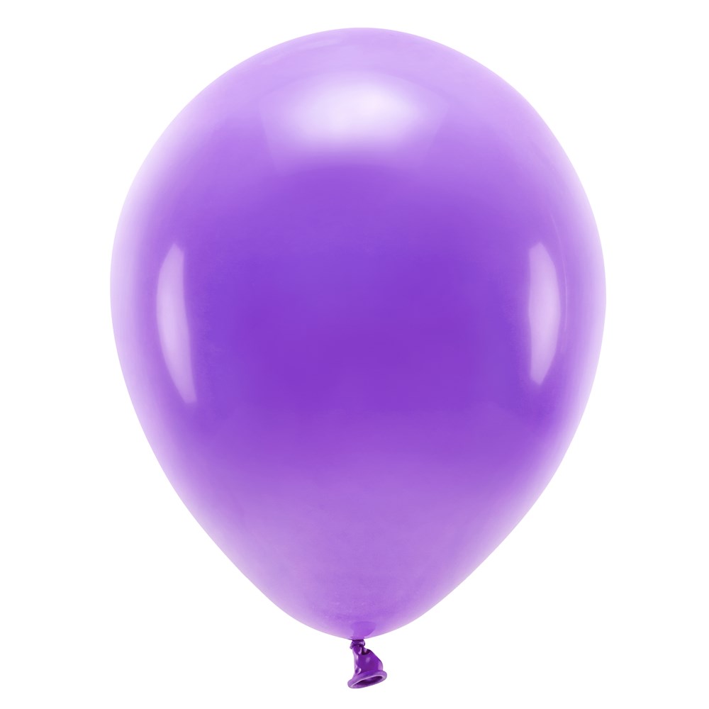 Eco balloons which are biodegradable because they are made of 100% natural rubber. It is an environmentally friendly material. Dimensions: 26 cm pastel, purple. Packing 100 pieces