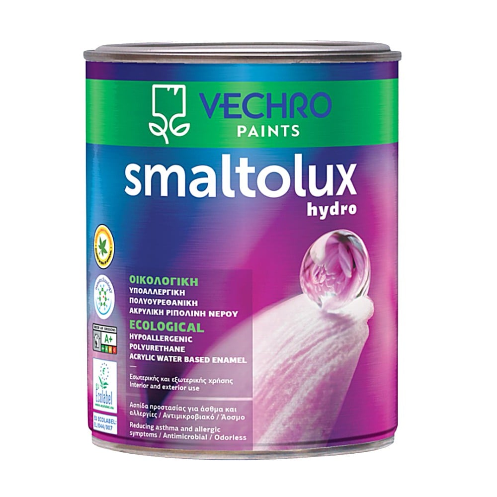 Ecological paint, polyurethane, water-based acrylic for interior use. No smell. Innovative coating with antimicrobial efficiency. Due to its synthesis, it protects the wall from the growth of microorganisms (bacteria and fungi). It can be used on wood, metal, glass, hard PVC, plaster, old alkyd surfaces, etc., with excellent adhesion. Gives a soft, firm and elastic result without yellowing. It is certified according to EN 71-3 Intended for use in areas with high humidity. Smaltolux hydro is an ideal solution for: • hospitals, intensive care units, surgeries, baby care units, • hotels, schools, public buildings • bakeries, food warehouses and pharmacies, military buildings, sports centers, breweries and other surfaces exposed to wet conditions (kitchens, bathrooms), insufficient ventilation and closed places from the air, as well as places where high hygienic conditions are required, contributing to a better environment internal, especially for those who suffer from allergies and asthma