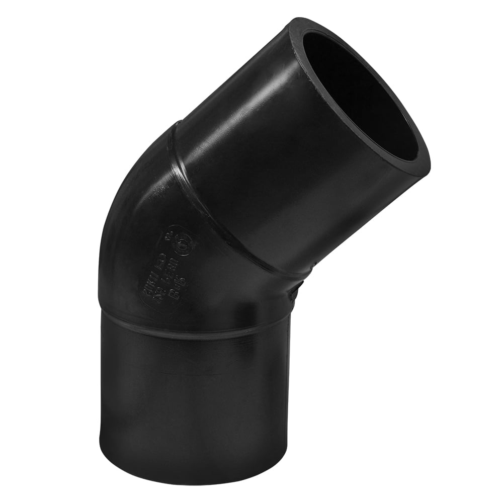 Elbow HDPE Ø 125mm with angle 45° used widely today in Europe for angular lines installations of water supply infrastructure and lines for the transport of natural gas. The elbow mounted by the method Butt-fusion. Elbow enables network returns 45° angle. For welding HDPE pipe with elbow used welding heat machinery which makes it possible merger of elbow pages and pipe and through pressure enables their union. Manufactured with European standards, resistant to corrosive materials, high resistance to deformation of land and resistant to pressure up to 16 Bar.