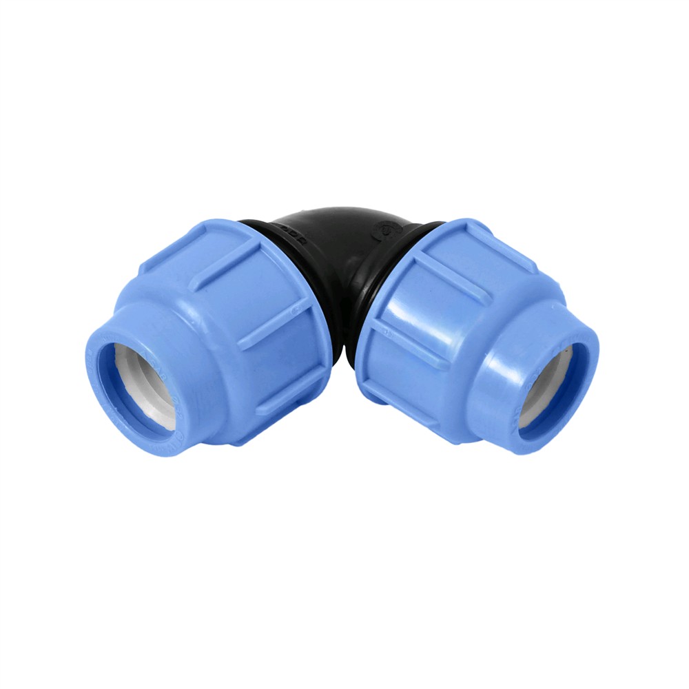 Elbow with faucet of PP 32x32mm with angle 90° used to installations angular water supply infrastructure lines, in irrigation and agricul, etc. The elbow enables network returns 90° angle. Elbow network connects two pipes through coercive mechanical faucet. Manufactured with European standards, resistant to corrosive materials designed to withstand pressure up to 16bar.