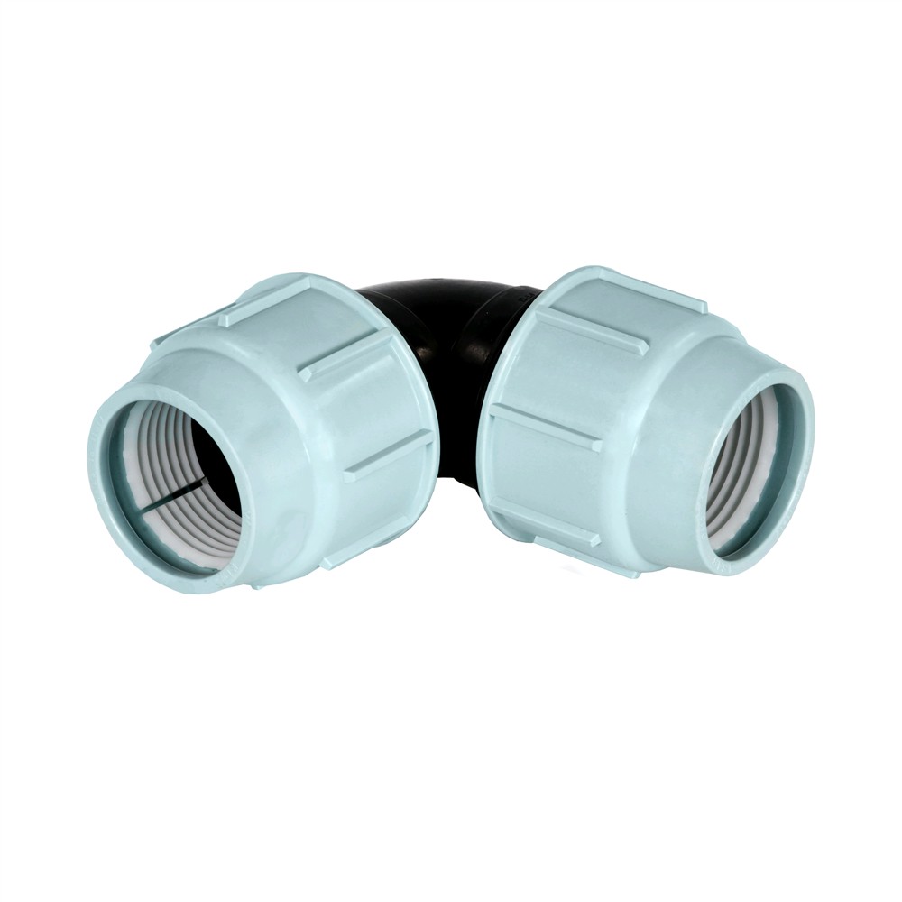 Elbow with faucet of PP 110x110mm with angle 90° used to installations angular water supply infrastructure lines, in irrigation and agricul, etc. The elbow enables network returns 90° angle. Elbow network connects two pipes through coercive mechanical faucet. Manufactured with European standards, resistant to corrosive materials designed to withstand pressure up to 10bar.