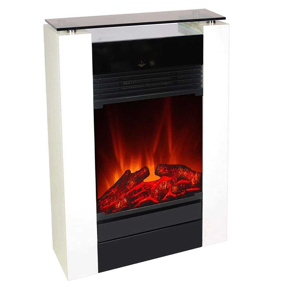 This modern design electric fireplace is an excellent addition to your living space. he imitation wood conversion combines an elegant look with the practical properties of a plastic surface: easy to clean, very durable, robust. The high-quality workmanship leaves nothing to be desired, even with the highest demands. A panel of safety glass is attached to the top of the chimney breast. This is not only an eye-catcher, but can also be used as a shelf for smaller decorations if desired. The latest technology creates the perfect illusion of a real fireplace with glowing logs. On cold days, the additional built-in heater will pamper you with pleasant warmth.