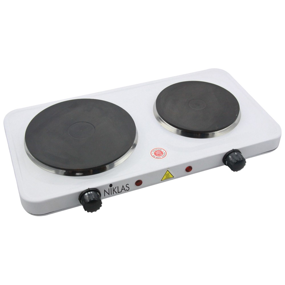 Cast Iron Plates Ø 185 mm. + Ø 150 mm. rated power 2500 Watts, thermostat for temperature control, safety thermofuse, pilot light indicating plate operation, enameled steel body. Dimensions 46x24x7 cm.
