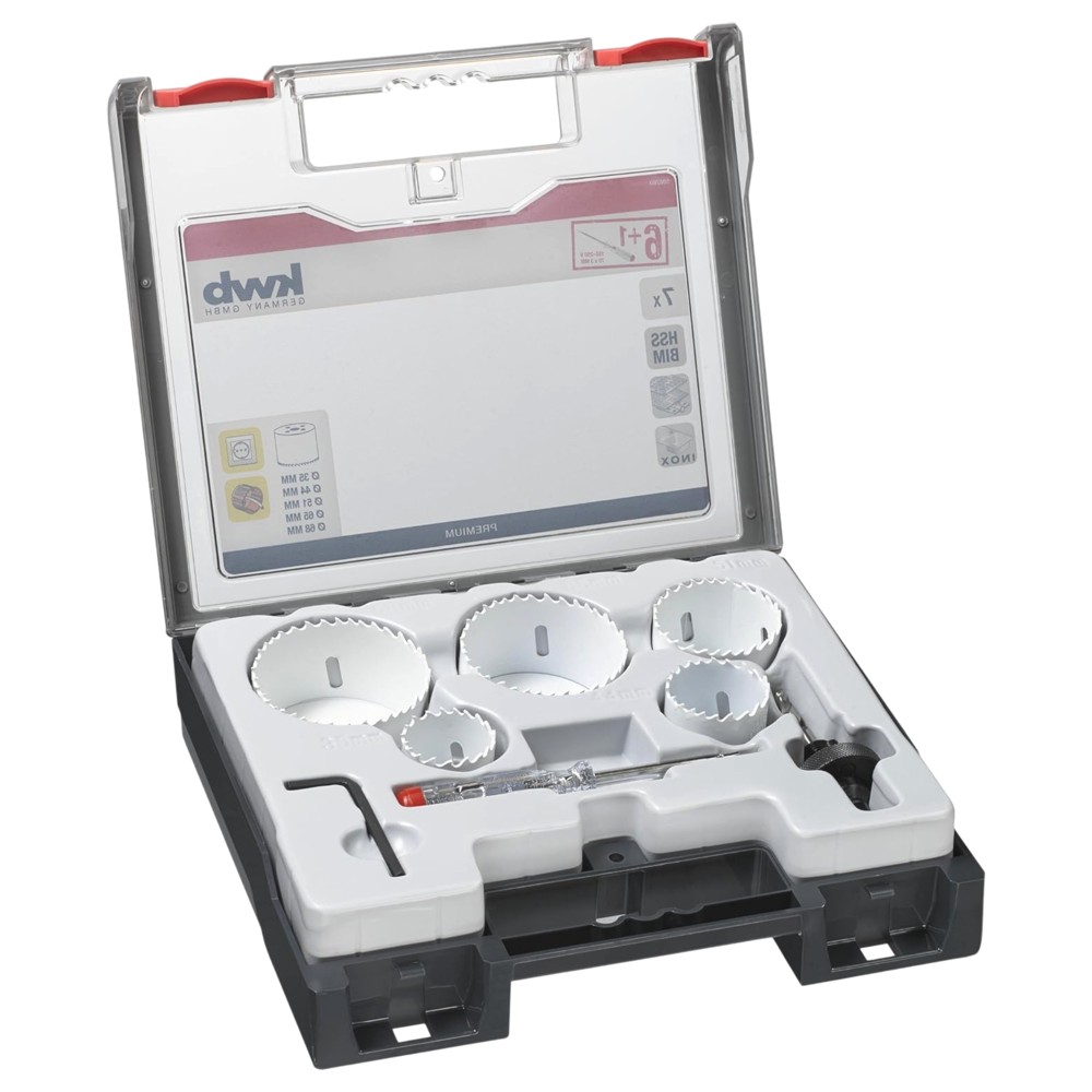 The KWB electrician's drill bit set is a professional and reliable solution for precision drilling in various materials such as metal, plastic or wood. Consisting of Bi-metallic drill bits with HSS-CO (high-speed steel with cobalt), this set guarantees high durability, resistance to high temperatures and long service life. It includes the sizes most used by electricians: 35 mm, 44 mm, 51 mm, 65 mm and 68 mm, making it suitable for electrical installations, socket boxes and cable ducts. The set also contains an indicator for precise positioning, ensuring efficiency and accuracy during work. Practically organized, this set is essential for any electrical professional who demands high quality and performance.