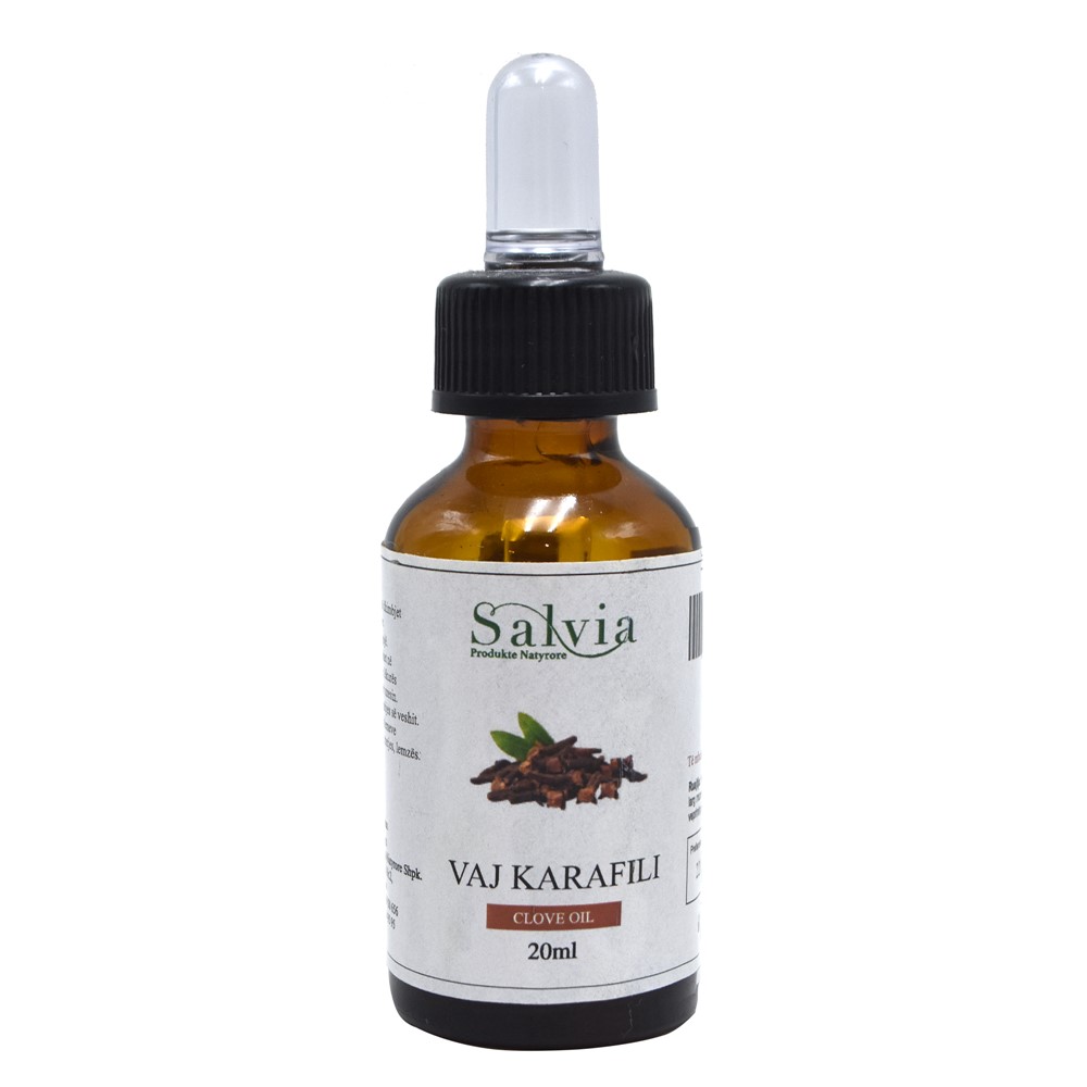 Clove essential oil, which helps soothe toothache, helps in the treatment of ulcers in the oral mucosa, treats skin problems, relieves stress, treats ear pain, as well as treats stomach and digestive problems and hiccups. How to use: Apply to the desired area and massage until it is absorbed by the skin.