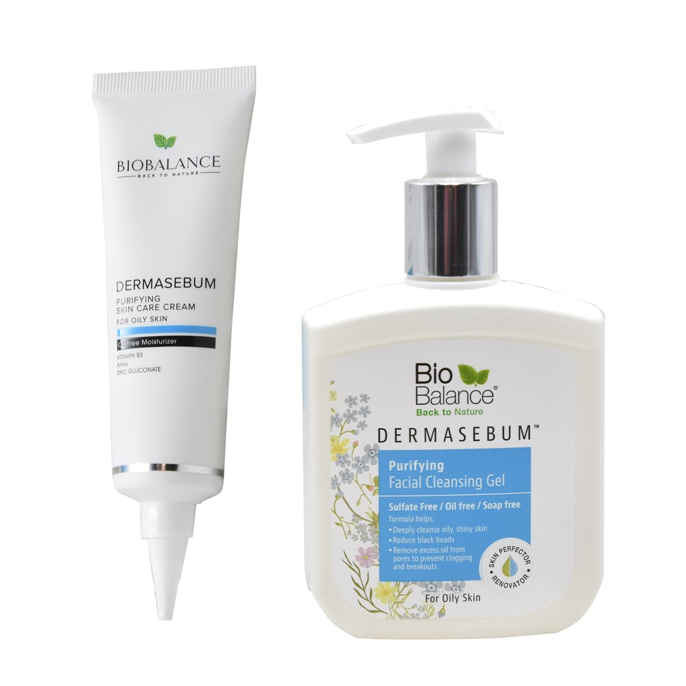 Set for facial skin. The set contains a gel for cleaning the face + serum cream for the face.