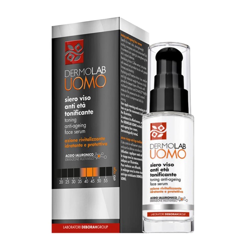 Dermolab Uomo Anti-Aging Facial Toning Serum is an ideal treatment for men who need to combat skin aging, loss of tone and the formation of free radicals. Its formula, with a toning and revitalizing action, protects the skin while smoothing and toning the facial contours. Apply the Anti-Aging Serum in the morning and evening with circular movements before your usual treatment.