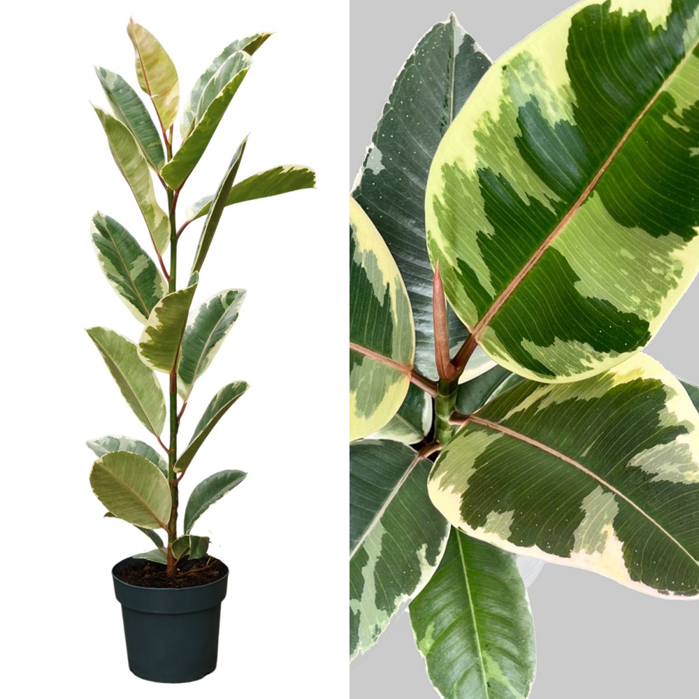 Give life to your environment with a Ficus flower, with many glossy green and cream variegated leaves creates a gorgeous weeping plant to soften any space. Perfect for adding life and structure to your room with the added benefit of helping to purify the air. It doesn't have many needs, as long as you find a bright spot away from direct sunlight, not close to a heat source like a radiator and away from any draughts it will usually be happy. Once it has the right place try not to move it as they don't like being moved around. Water with tepid water when the soil is just starting to dry out on the surface, but don't let it dry out completely. During the winter you can reduce the watering. Mist the leaves in the summer months, and feed with a liquid fertiliser during the growing season.