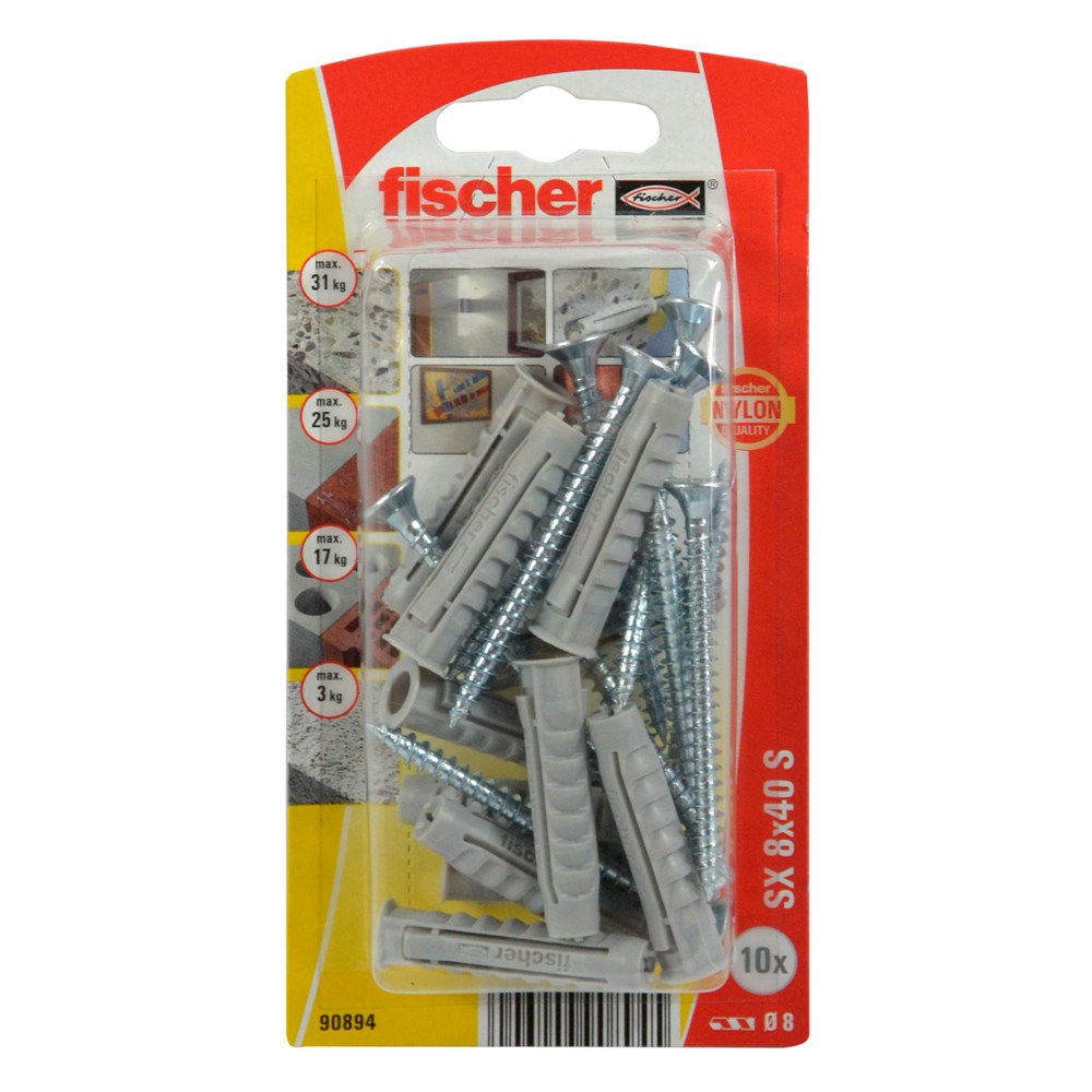 Fischer Expansion plug 10 x SX 8 x 40, 10 x chipboard screw 5 x 60