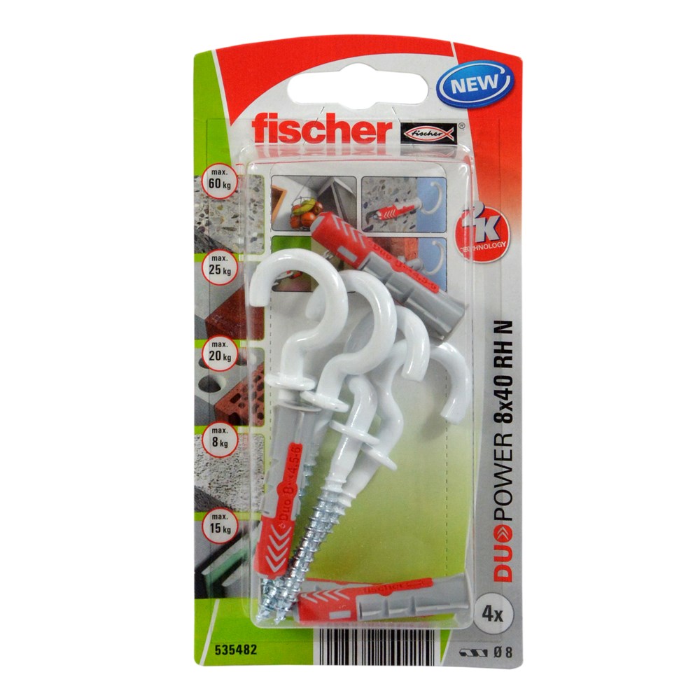 You're reviewing:Fischer Universal plug 4 x DUOPOWER 8 x 40, 4 x round hook 5.5 x 77 nylon-coated