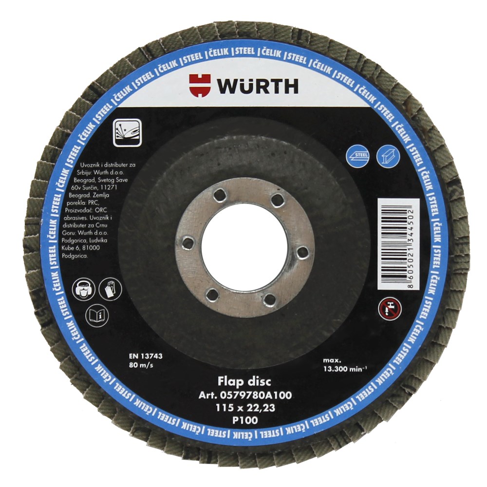 Flap wheel, Wurth, 115x22 mm, Grit 100, scraper