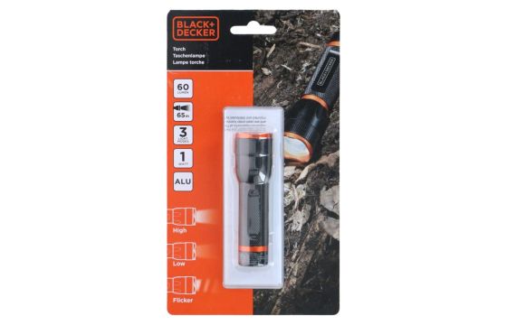 BLACK+DECKER LED Flashlight, the perfect companion for all your adventures! Whether you're camping, hiking or simply looking for a reliable emergency flashlight, this LED flashlight is the ideal choice. With a compact diameter of only 28 mm and a length of 97 mm, the LED flashlight easily fits in your bag or pocket. The aluminum material ensures that the flashlight is lightweight and durable. The BLACK+DECKER LED flashlight runs on one AA battery (not included), making it easy to replace the battery when it runs out. The flashlight uses a powerful XPE LED that produces 1 watt of power, resulting in a bright light output of 60 lumens with a range of 65 meters. You can choose from three different light modes: high, low and pulsating. The highest setting provides maximum brightness, while the lowest setting ensures a longer battery life. The pulsating mode can be used as an emergency signal.