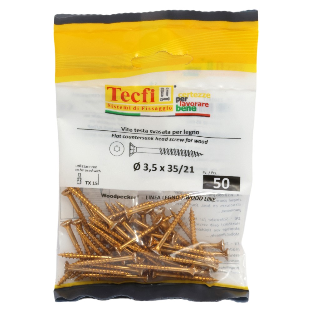 You're reviewing:Flat CSK head torx recess chipboard screw,yellow zp, Ø3,5x35/21mm, Bag 50