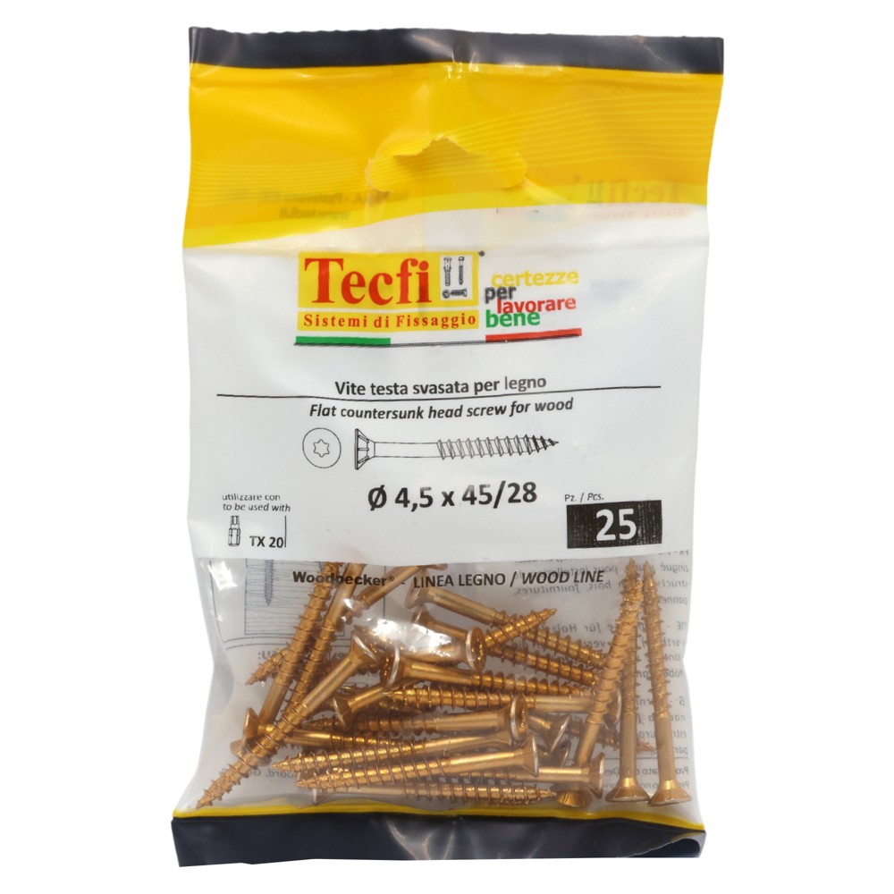 You're reviewing:Flat CSK head torx recess chipboard screw,yellow zp, Ø4,5x45/28mm, Bag 25