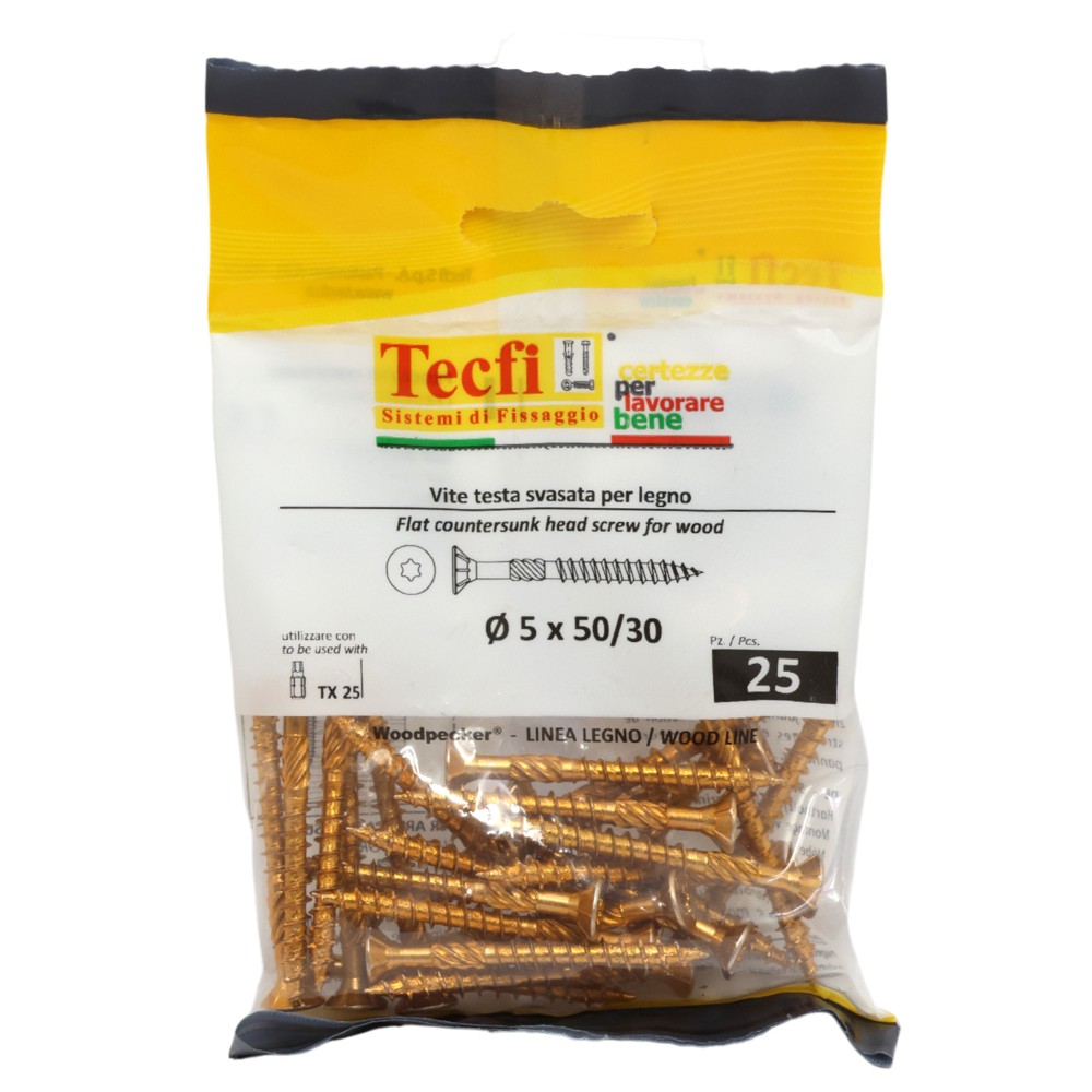 You're reviewing:Flat CSK head torx recess chipboard screw,yellow zp, Ø5x50/30mm, Bag 25