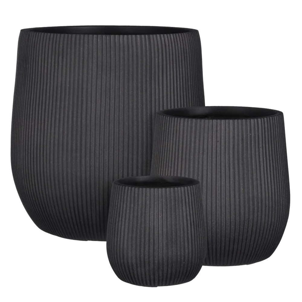 Fllower pot, Nuovo, set 3 pieces, ceramic, black, Ø22xH22 cm; Ø31xH32 cm; Ø44xH44 cm