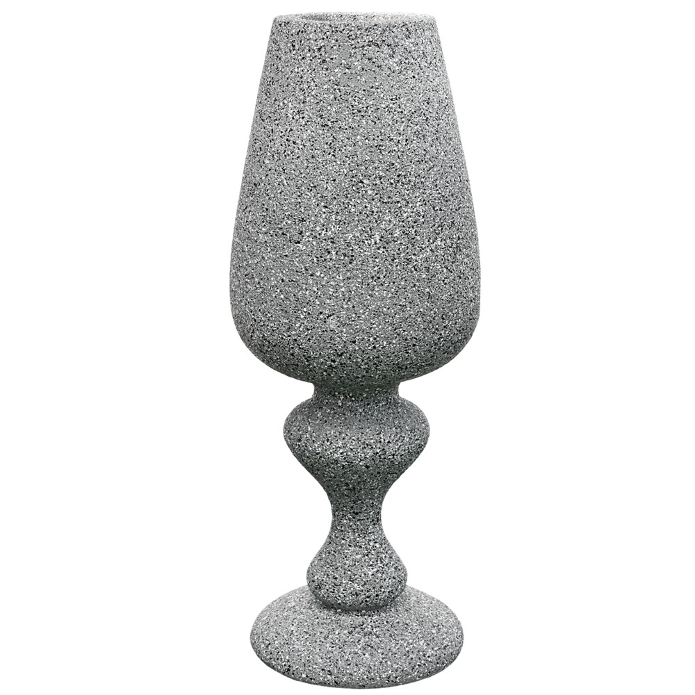 This is a flower vase designed in a special decorative style, carefully crafted from acrylic and anthracite color. The anthracite color gives it a sophisticated look and is suitable to combine with most colors and styles of interiors designed to create a sophisticated and modernized atmosphere